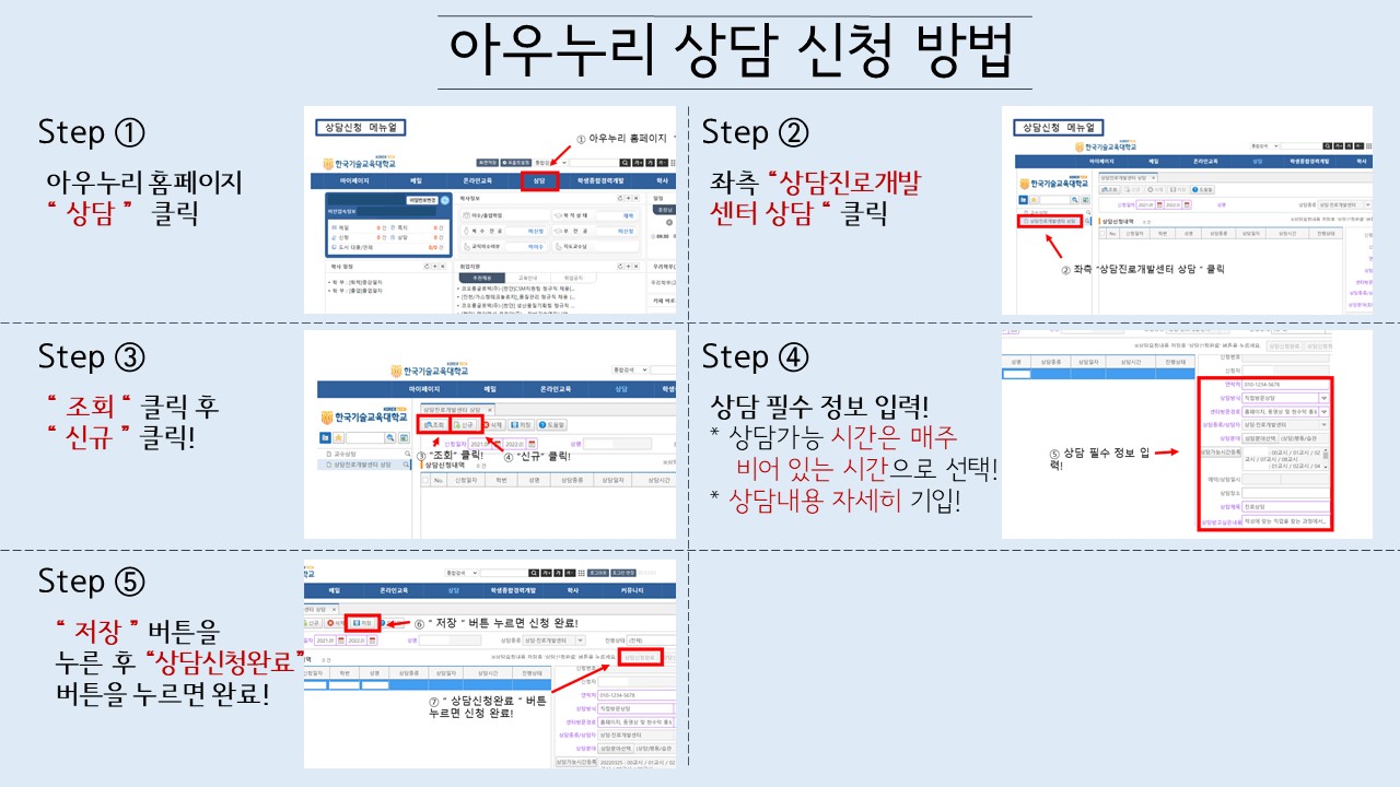 아우누리를 통한 상담·진로개발센터 상담 신청 방법을 안내드립니다.
